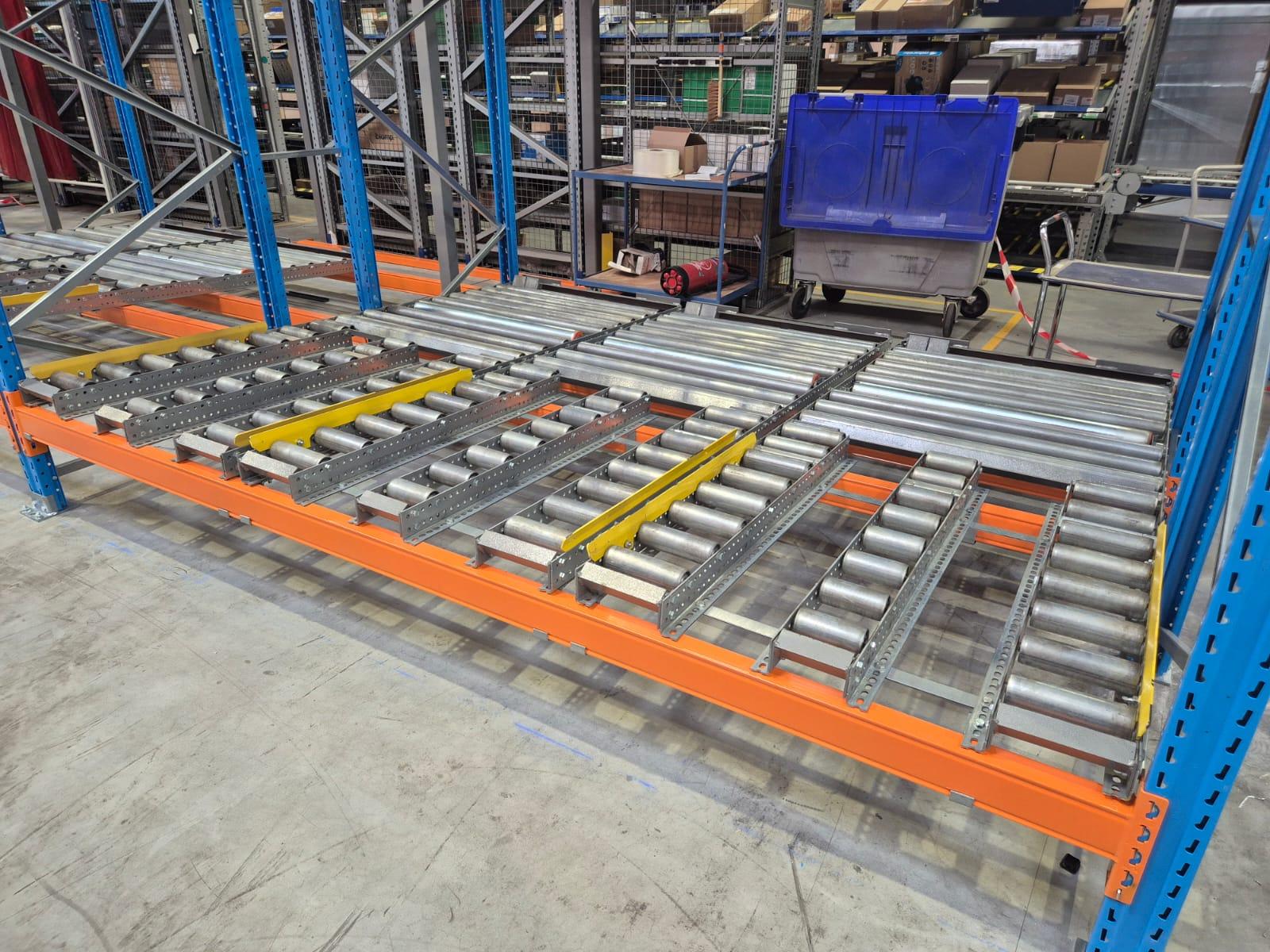 Le rayonnage à accumulation est une solution de stockage haute performance, conçue pour les entrepôts à forte rotation de marchandises. Il permet de stocker plusieurs palettes en profondeur sur des rails inclinés, exploitant la gravité pour assurer un écoulement automatique des charges.